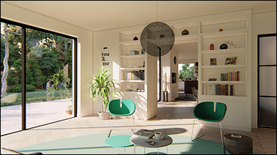 ムービーモードの[ イメージシーケンス ]タブでグローバルイルミネーションを追加し、レンダリングされた低範囲ハイパーライトの例: