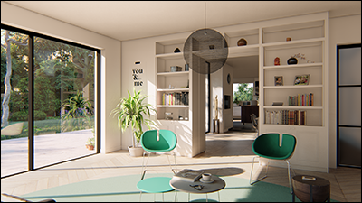 ムービーモードの[ イメージシーケンス ]タブでエリアライトを天井に向けてレンダリングした低範囲ハイパーライトの例: