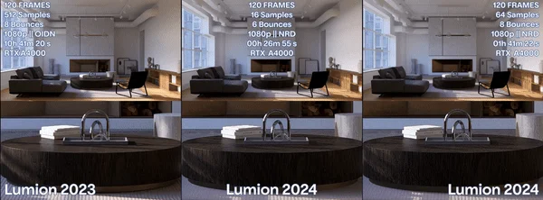 Lumion 2023でアニメーションをレンダリングすると、ノイズ除去の制限により困難が生じました。もちろん、レンダリング時間は固有の計算が必要で、シーンの要件に依存するため、ラスタライズよりも大幅に長くなります。
