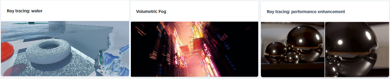 レイトレースエフェクトは、360°パノラマレンダリングとNRD/MISの組み込みが完全に完了するまで無効になっています。