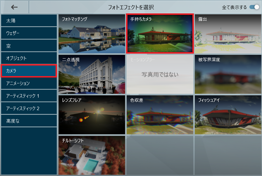 2.3 「カメラ」にある「手持ちカメラ」を選択します。