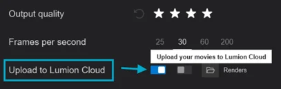写真やパノラマと同様に、出力設定でこのトグルを有効にすると、LumionからLumion Cloudへ直接ムービーをレンダリングしてアップロードできるようになりました。