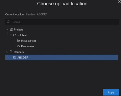 レンダリングしてLumion Cloudに直接アップロードする際に、レンダリング結果のアップロード先フォルダを選択できるようになりました。