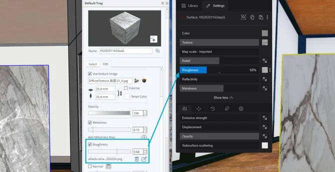 LiveSyncが有効な間、3DモデリングアプリケーションでPBRマップやマテリアルパラメータに変更を加えると、その変更が即座にLumionに反映されます。