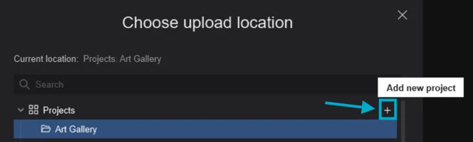Cloudへのアップロードを有効にすると、レンダリング時に「アップロード先を選択」ウィンドウの[ + ]ボタンから、Lumion内で直接Lumion Cloudプロジェクトやフォルダを作成できるようになりました。