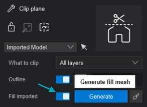 [ モデルを塗りつぶす ]トグルを有効にするだけで、Lumionはモデルがクリップされている箇所にメッシュを生成しようと試みます。