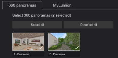 写真やクリップと同様のワークフローで、レンダリング/アップロードするパノラマを選択することも可能です。