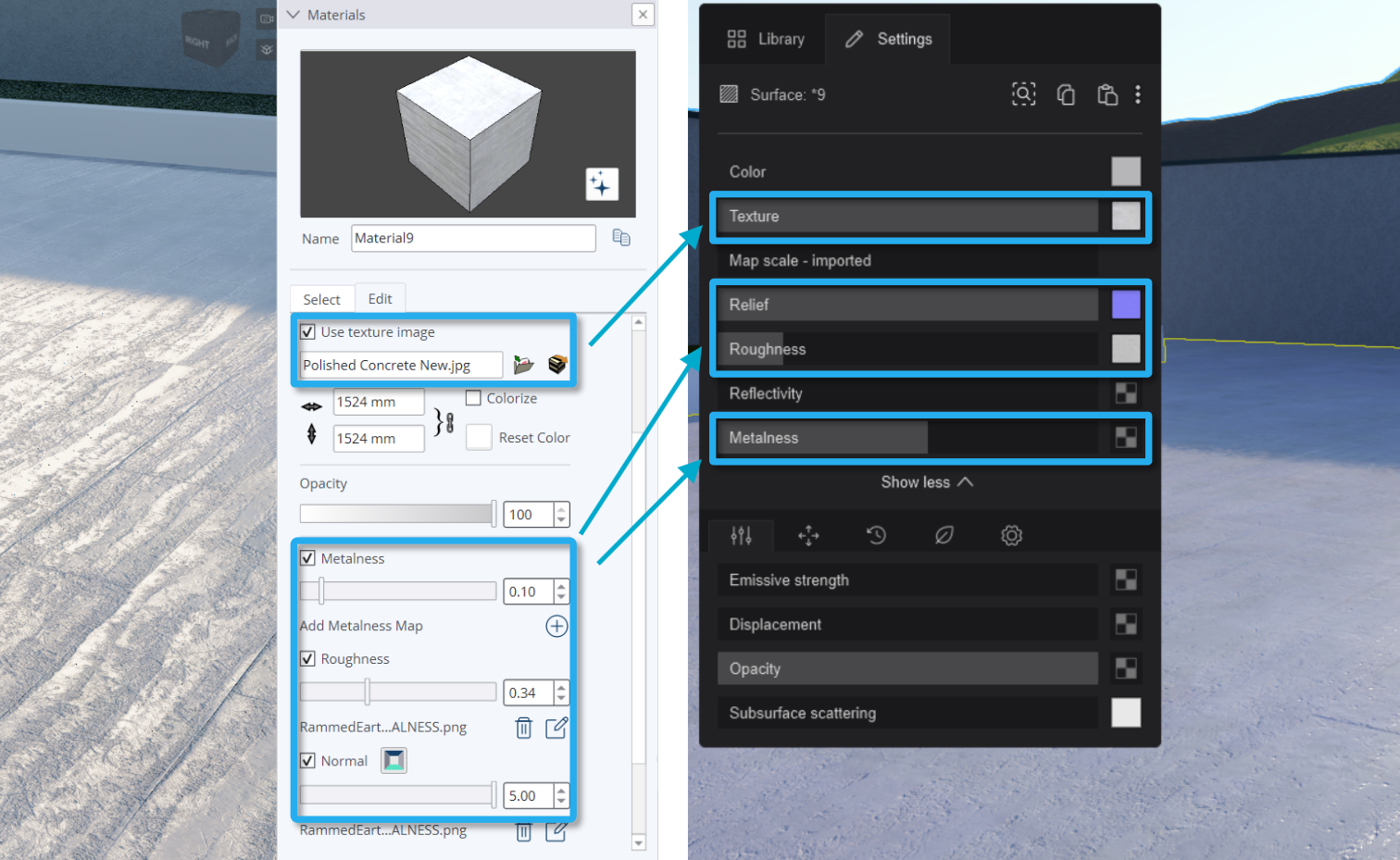 - メタリック(Metalness)およびメタリックマップ